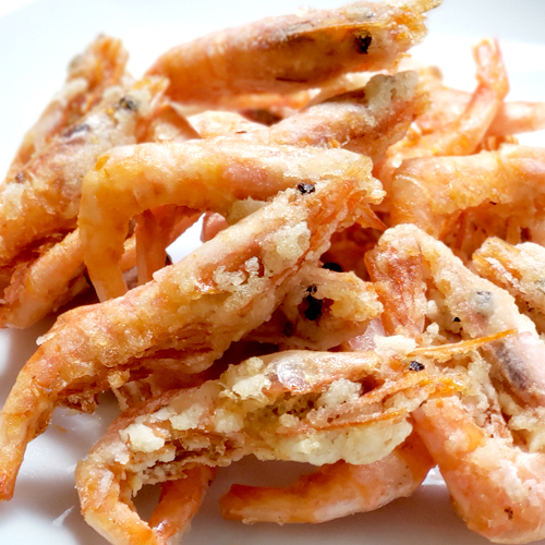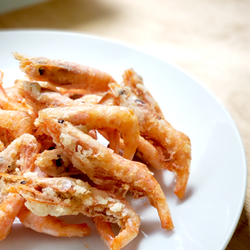 頭からしっぽまで一口で丸ごと食べたり、頭と身の部分ごとに違う甘みを味わう楽しさが食卓を盛り上げてくれます。 唐揚げ粉にもこだわりがあって、北海道産の馬鈴薯でんぷんや赤穂の塩を使用しています。 甘えび本来の味がより際立つ様に、シンプルですが厳選した食材を組み合わせて製品にしています。