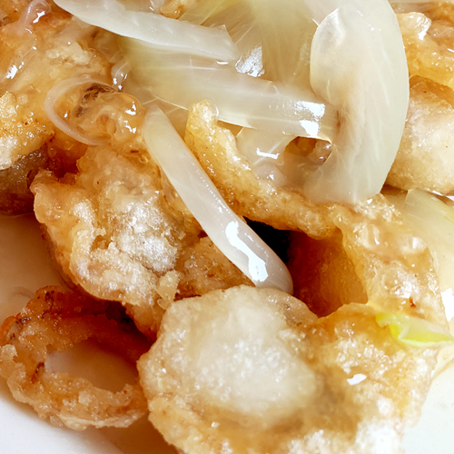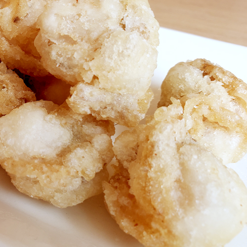 北海道噴火湾産と青森県陸奥湾産の2種類の産地のものをその年度の品質・状態を判断して唐揚げに合うものを使い分けて使用しています。 また、唐揚げ粉もホタテ本来の旨みを邪魔しないシンプルな唐揚げ粉を使用して製造しています。